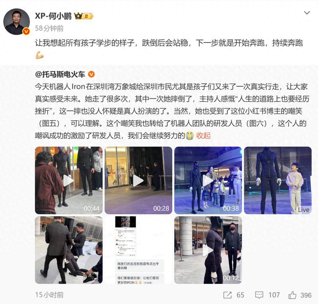 何小鹏则表示:“让我想起所有孩子学步的样子,跌倒后会站稳,下一步就是开始奔跑,持续奔跑”。