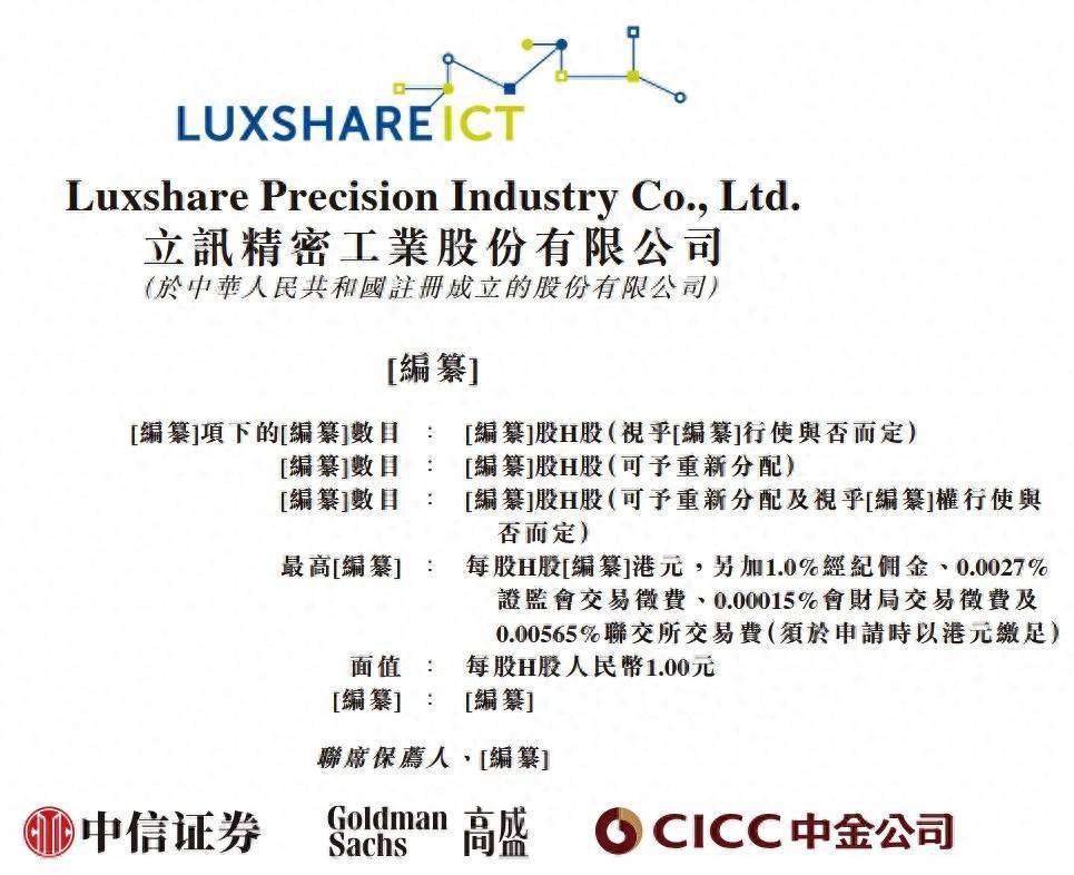 联席保荐人:中信证券(香港)有限公司、高盛(亚洲)有限责任公司、中国国际金融香港证券有限公司