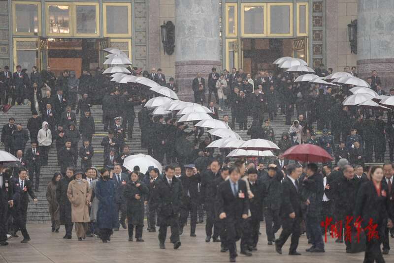 3月4日,北京,人民大会堂外,十四届全国人大四次会议预备会议后,代表们走出会场。中青报·中青网记者 李隽辉/摄